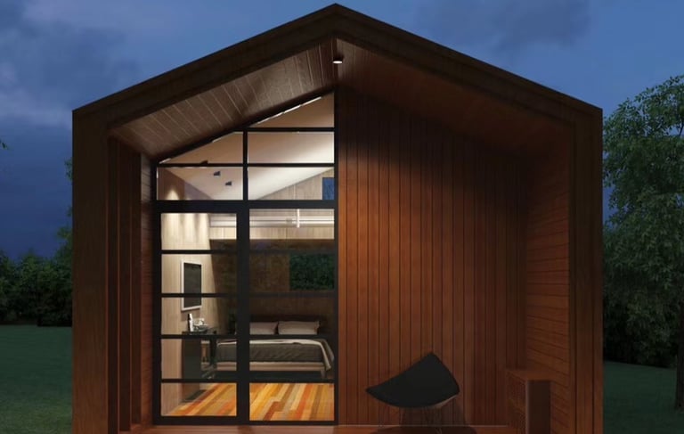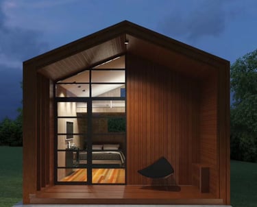 This mobile house, combines compact living with flexibility. It features a streamlined, rectangular structure that maximizes space while remaining easy to transport. The exterior is made from lightweight materials , with large windows to let in natural light and a small porch area or deck that folds down for outdoor relaxation.